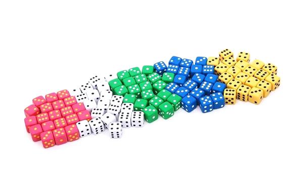 Dobbelsteen in verschillende kleuren. Te gebruiken bij vele spelborden (kleur naar keuze: wit, roos, blauw, geel en groen).