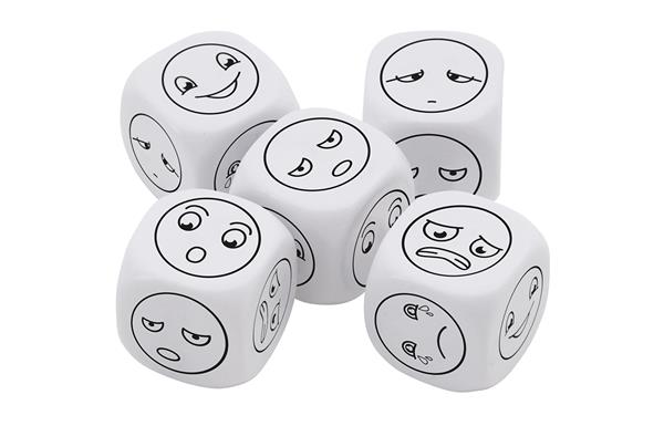 5 emotie dobbelstenen (afm. 1,6 x 1,6 cm)