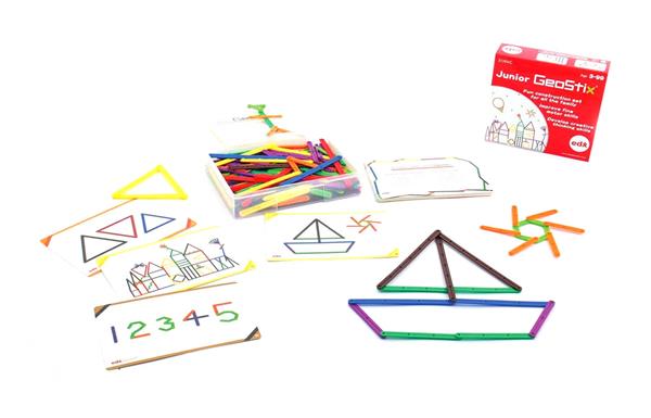 Fijnmotorisch spel met betrekking op ruimtelijke oriëntatie. De kinderen ordenen de stix op basis van opdrachtkaarten. De stix hebben verschillende lengtes en kleuren die aan elkaar kunnen geklikt worden.