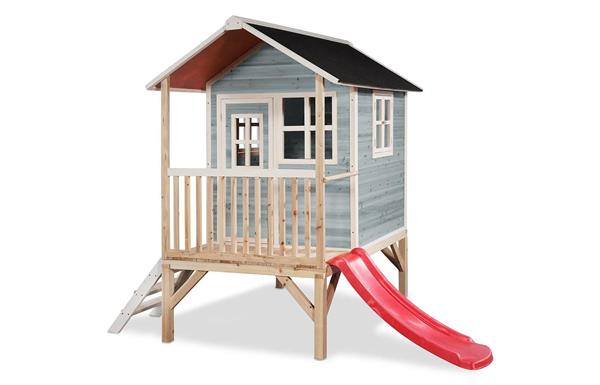 In dit houten speelhuis hoeven de kinderen zich geen dag te vervelen. Dit huisje staat op poten en heeft een trapje en een glijbaan die zowel links als rechts aan het speelhuis kunnen worden bevestigd. Het is eenvoudig in elkaar te zetten vanwege de vooraf gemonteerde onderdelen.