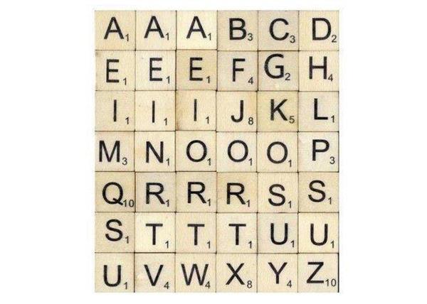 Houten letters die kunnen gebruikt worden om het spel scrabble te spelen. Natuurlijk zijn er ook nog oneindig veel andere mogelijkheden met deze letters. De letters zijn 2 x 2 cm groot.