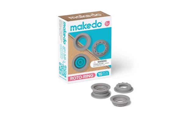Door draaiende, roterende en glijdende bewegingen mogelijk te maken, zal de Roto-Ring - gemaakt van 100% gerecycled materiaal - een wereld aan nieuwe mogelijkheden toevoegen aan je Makedo-ontwerpen.