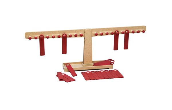 1 rekenweegschaal (afm. staven 29 cm, h 11 cm) 22 hangborden