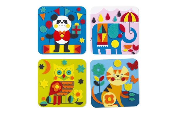 Maak mooie viltschilderijtjes met deze creatieve knutselset. De stukjes vilt zijn zelfklevend. Plak de stickers van vilt naast en op elkaar op de voorbeeldkaarten en maak zo lieve, kleurrijke dieren.