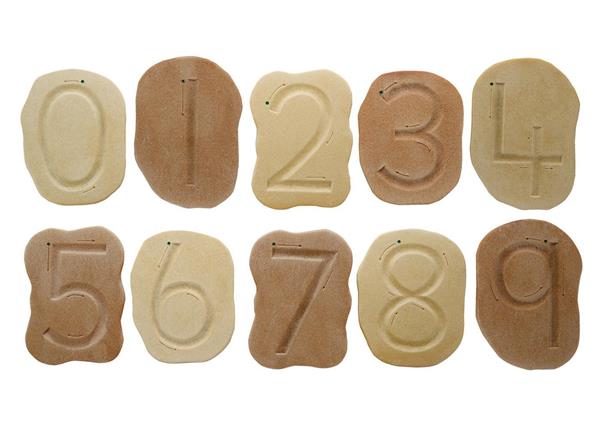 10-delige set met voel getal patroon stenen (afm. 12 - 13,5 cm)