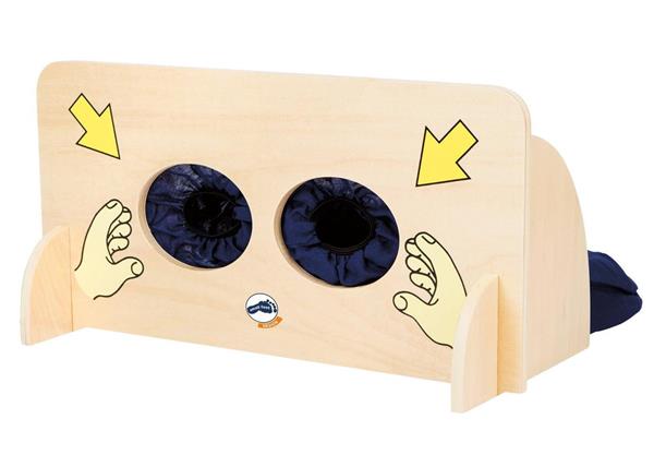 Zeer leuke voelwand waaraan een zak is bevestigd waarin je allerlei spulletjes kan stoppen. Laat je kind de handen door de gaten stoppen en raden wat er in de zak zit. Leuke sensorische activiteit waarbij hard wordt ingezet op het tactiele.