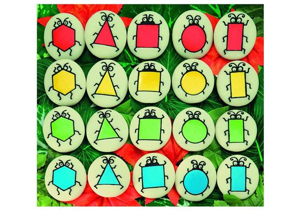 Spelenderwijs kleuren, vormen en patronen inoefenen met deze zeer duurzame vorm sorteerstenen. Elke steen is gegoten uit een speciale mix van steen en hars en gegraveerd met kleurrijke vorm in een insect-karakter. Deze duurzame weerbestendige kiezelstenen zijn zeer geschikt voor gebruik in het zand, water en buiten. Na enige tijd zullen deze niet vervagen.